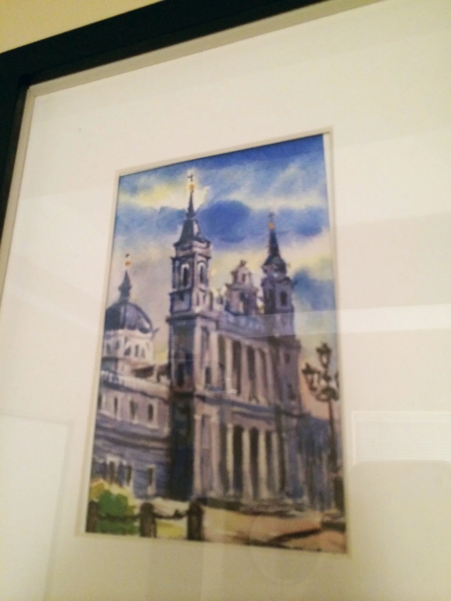 I'm pretty sure at this point that my family has kept the European population of sidewalk artists in employment since 2006. Every time we go abroad, we come home with paintings, prints, you name it, packed flat or carefully rolled and carried on the plane with us. It's a deceptively cheap way to get a really unique and sentimental piece of art! My bedroom gallery wall features this cute little print of the cathedral at Madrid, which Jonny brought home from his semester in Luxembourg for me:
